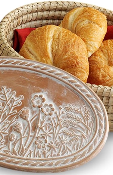 Serve Warm Rolls, Pitta, Muffins, and Food Roti Box - keep your, sourdough, and cakes warm on the table in this beautiful terra cotta tile and handwoven bread basket - strong and sturdy roti basket to protect and retain heat.