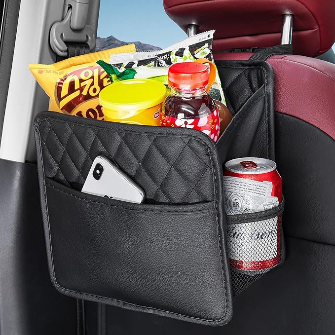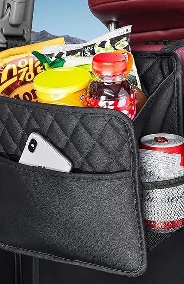 This backseat car organizer have 4 compartments of storage, convenient storage for Phone, Pen, Sunglasses, Notepads, Toy, Beverages, and Snacks.You can reach anything you want with the car seat organizer.